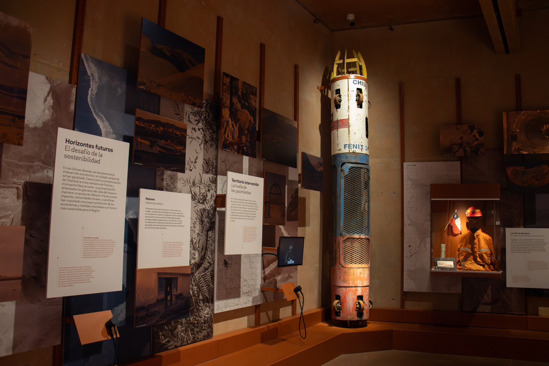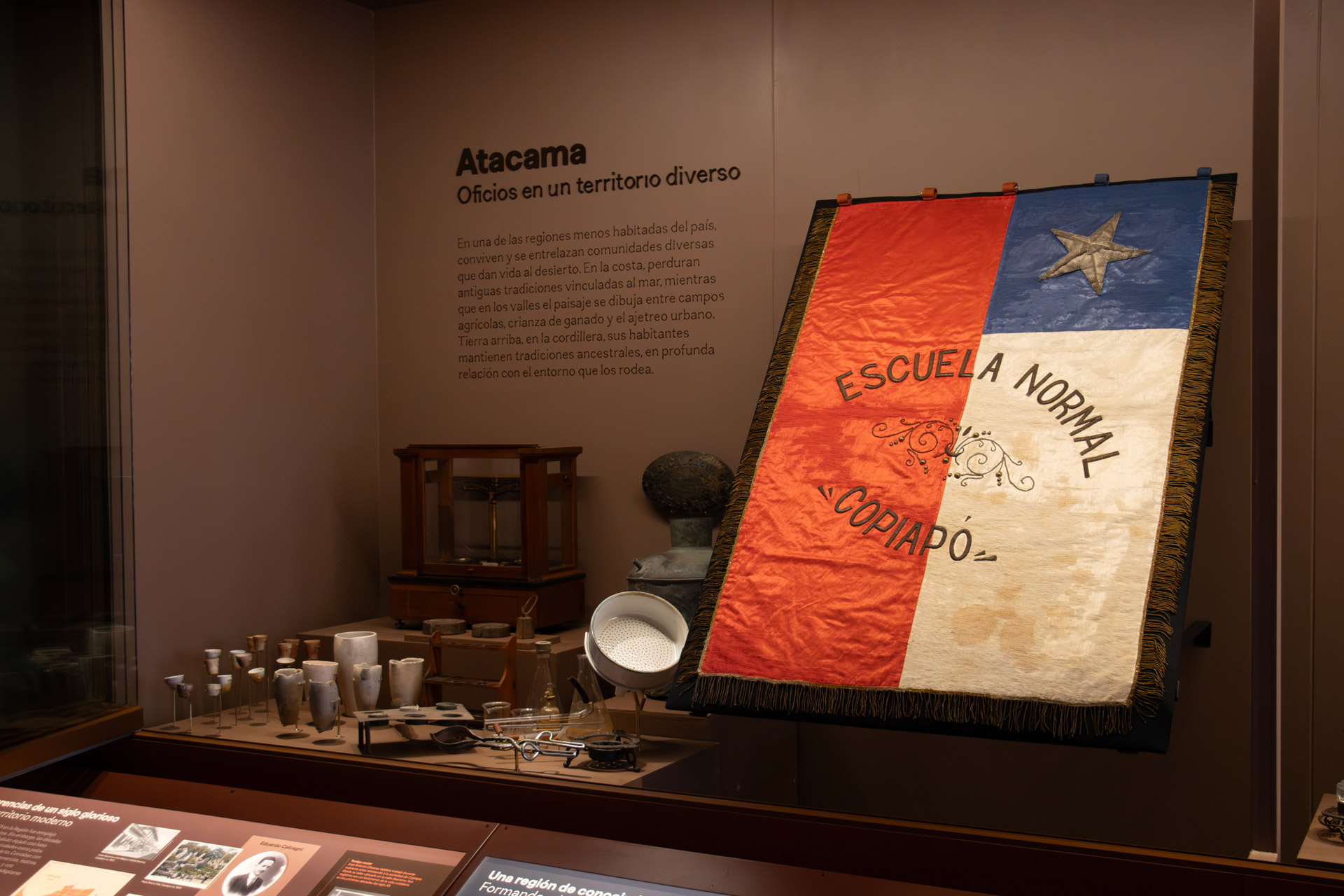 Uno de los principales hitos del proyecto es su nueva museografía, desarrollada por el Servicio Nacional del Patrimonio Cultural (Serpt), tras un extenso proceso iniciado en 2018, que incluyó investigación territorial, más de 200 entrevistas a especialistas y actores locales, y un exhaustivo trabajo de conservación, catalogación y ampliación de las colecciones. La exhibición permanente está organizada en siete salas temáticas, que recorren la geografía, geología, paleontología, arqueología, historia, biodiversidad y astronomía de Atacama, proponiendo al público una verdadera expedición por el territorio regional.